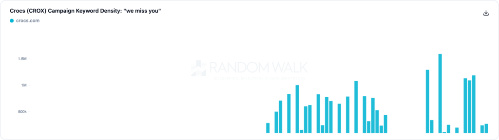 For the case of brands like Crocs, we see this often in the form of “we miss you” type emails. Growth in these type of emails helped us uncover a structural slowdown in demand for Crocs in the Unites States.